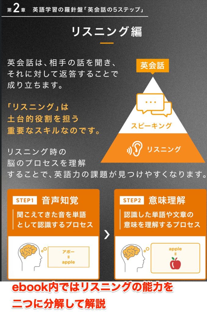 ebookを読むと、英語の能力を分解して考えることの重要性、そしてそれぞれの能力向上に必要な学習方法がざっくりわかります。