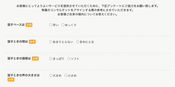 無料カウンセリング受講前には、2択で答える性格診断のアンケートがあり、自分に合う担当コンサルタントを選ぶ判断材料になります。